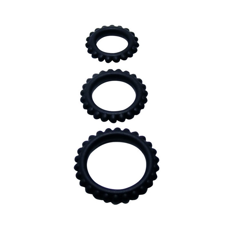 BAILE - TITAN SET 3PCS COCK RING BLACK 2.8 + 2.4 + 1.9 CM, D-208715