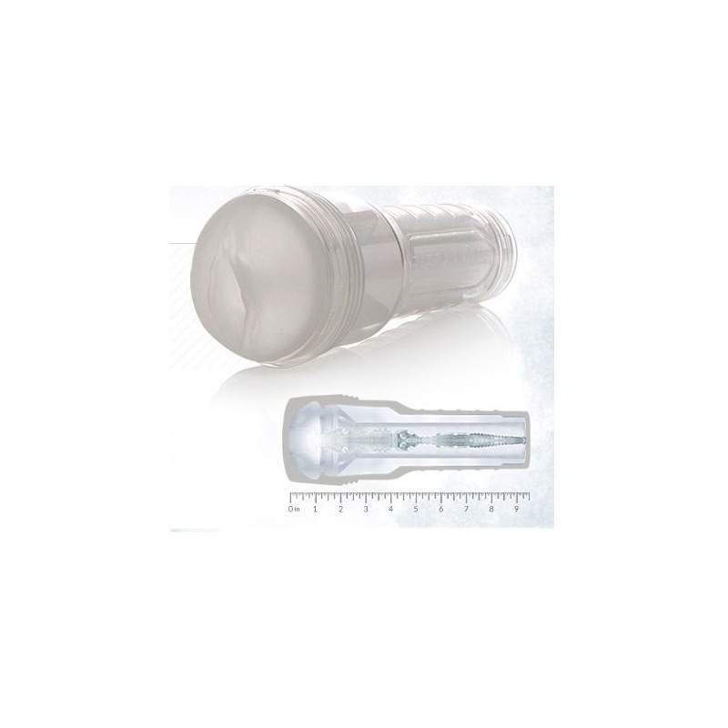 Fleshlight ice está formado por un estuche y una manga de masturbación exclusivos, ambos transparentes.