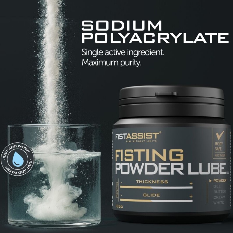 El Lubricante en polvo de Fist Assist es la solución definitiva para quienes buscan máximo control, precisión y rendimiento. Su innovadora fórmula en polvo se activa simplemente añadiendo agua, permitiéndote crear la consistencia ideal: desde una textura ligera y sedosa hasta una más espesa y acolchada.