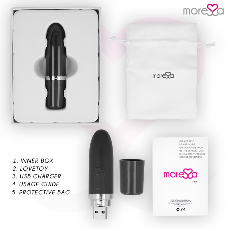 Como ocurre con todos los objetos de placer MORESSA, Ivy está diseñado para proporcionar un intenso gozo físico y una absoluta paz espiritual en cualquier situación y bajo cualquier circunstancia.