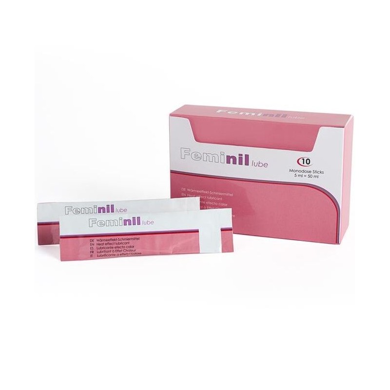 Feminilplus Lube es un lubricante íntimo a base de agua de efecto calor. Actúa como vigorizante y maximiza el placer gracias a su gran poder de lubricación. Vienen en un estuche de 10 sobres monodosis de 5 ml cada una.