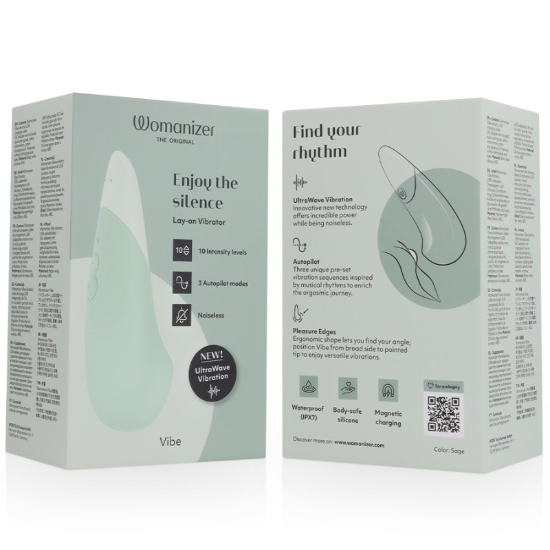 Vibrador silencioso de Womanizer. Vibrador silencioso que ofrece una nueva sensación con la Vibración UltraWave: combina vibraciones retumbantes de baja frecuencia con 10 potentes resonancias armónicas. Disfruta de una sensación suave y enriquecedora que intensifica tus sentidos y eleva tu orgasmo sin sobreestimulación.