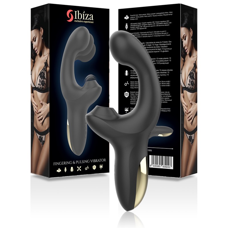 Te presentamos el nuevo vibrador doble IBIZA™ Fingering and pulsing vibrator. Ha sido creado para inducir un orgasmo combinado la estimulación del clítoris y del punto G. Es el “padre nuestro” de los placeres sexuales. Cuando lo pruebes, nada te parecerá igual. IBIZA™ Fingering and pulsing vibrator incluye la tecnología Ibiza Wave Motion para que el juguete no pierda intensidad cuando lo presiones con fuerza sobre el cuerpo y puedas disfrutar con total libertad. Ahora podrás experimentar un orgasmo combinado tras otro hasta alcanzar un nuevo nivel de bienestar sexual.
