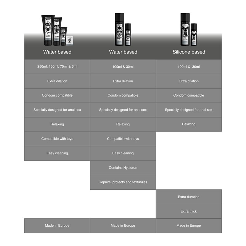 Fabricamos en base a la experiencia y lo importante que es probar cosas nuevas y ampliar sus horizontes sexuales. El eterno tema tabú del sexo anal es ahora socialmente aceptable y se practica de forma normal en millones de personas . Este lubricante ligeramente adormecedor se desarrolló para que le resulte más fácil comenzar con el coito anal