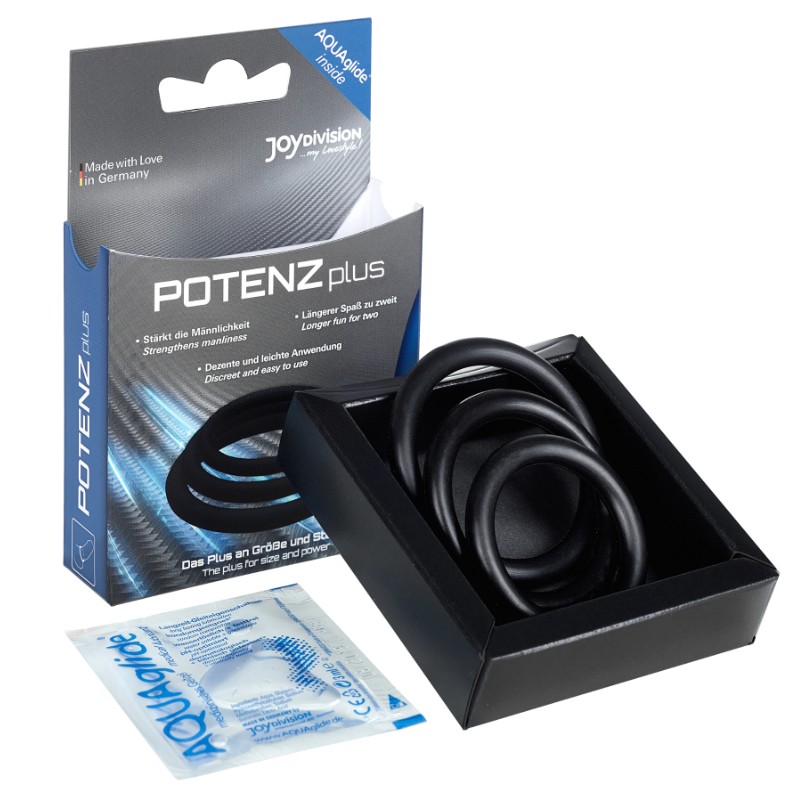 Potenz Plus, 3 anillos para el pene, fabricados con silicona médica, te permitirá experimentar una rigidez insospechada y una sensación de placer duradero para ti y tu pareja.