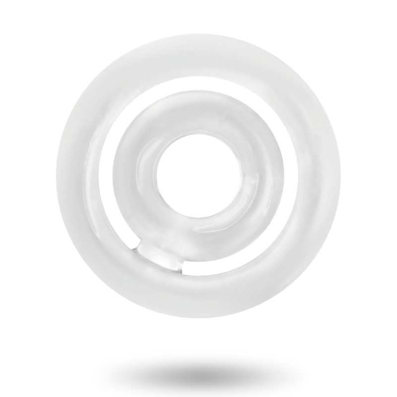 Este set de dos anillas está especialmente diseñado para utilizarlo simultáneamente en la base del pene y en la base de los testículos.
