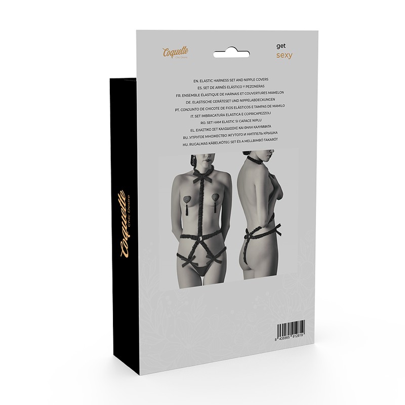 COQUETTE CHIC DESIRE - ELASTIC HARNESS SET AND NIPPLE COVERS BLACK, D-226916