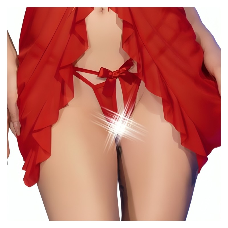 El conjunto viene completo con tangas "Ouvert" a juego, que complementan perfectamente el babydoll y añaden un toque final de coquetería y seducción. Este babydoll rojo de Chilirose es la elección perfecta para una noche de pasión y romance. Con su diseño sensual y atrevido, promete crear momentos íntimos llenos de emoción y deseo.