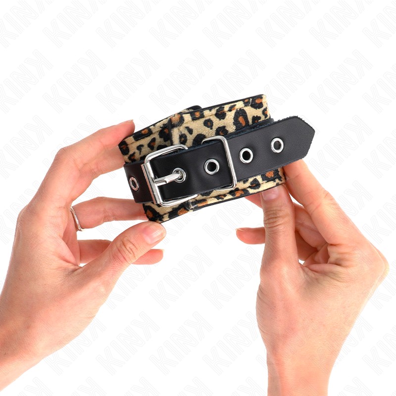 KINK - MUÃEQUERAS DE CUERO ESTILO LEOPARDO AJUSTABLE 18-29 CM X 5.5 CM