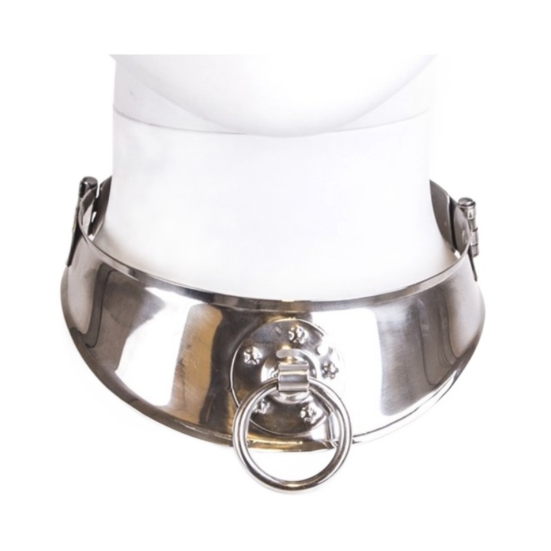 Este collar de sumisión de acero inoxidable puede ser usado como símbolo de sumisión o como un magnífico accesorio para llevar en disfracex u otros juegos fetiches. Es sexy y versátil. Este collar cromado está diseñado especialmente para hombres con bordes curvados.