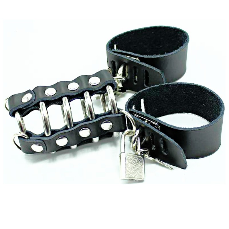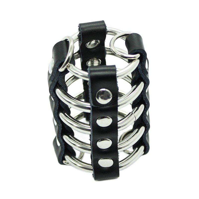 OHMAMA FETISH - PENIS CAGE WITH METAL RINGS AND LEATHER STRAPS, D-230057