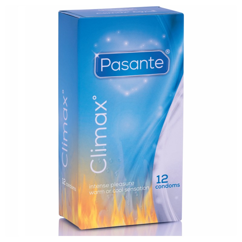 Pasante Climax contiene una mezcla de condones acanalados con una sensación de efecto calor o efecto frioo. Paralelos, texturizados, de color natural.