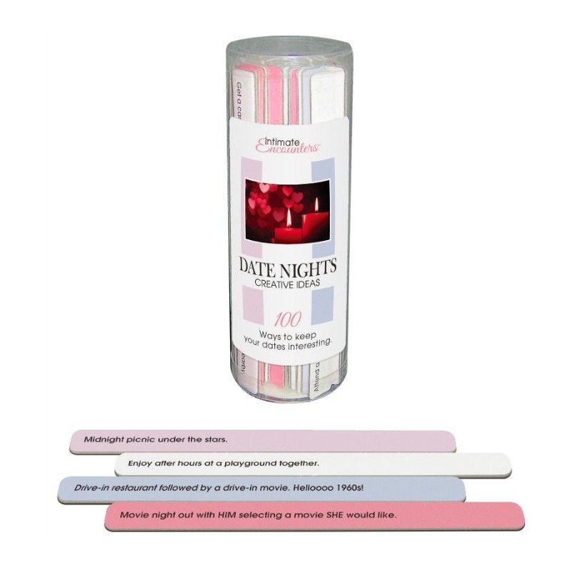 Cuando necesites una idea para una cita por la noche, selecciona una idea de uno de los sticks. Lee ambos lados y elige el que prefieras.