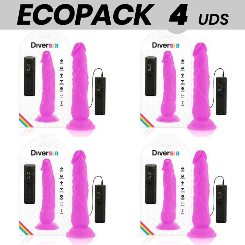 ECOPACK 4 UNITS - DIVERSIA FLEXIBLE VIBRATING DILDO PURPLE 21 CM -O- 4.9 CM, D-231475