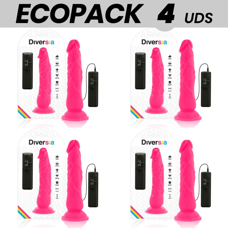 ECOPACK 6 UNITS - DIVERSIA FLEXIBLE VIBRATING DILDO PINK 21 CM -O- 4.9 CM, D-231481