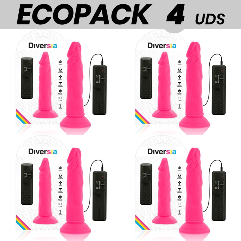 ECOPACK 6 UNITS - DIVERSIA FLEXIBLE VIBRATING DILDO PINK 23 CM -O- 4.3 CM, D-231482