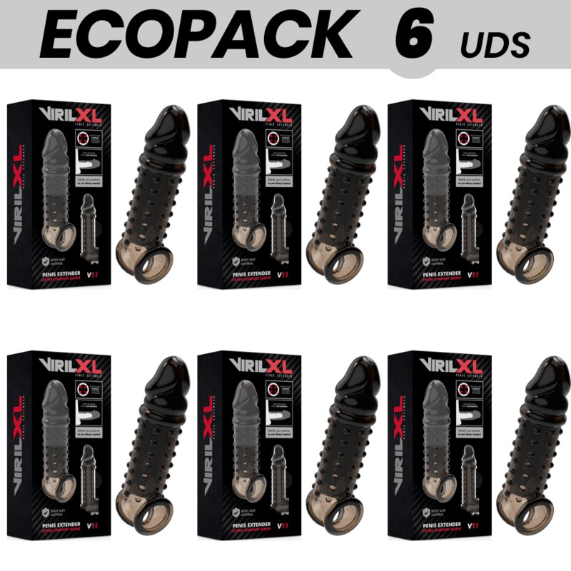 ECOPACK 6 UNITS - VIRILXL PENIS EXTENSION AND SHEATH V11 BLACK, D-231586