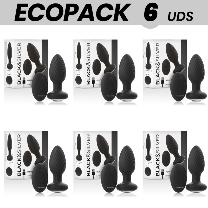 ECOPACK 6 UNITS - BLACK&SILVER WELLS ANAL PLUG SILICONE REMOTE CONTROL
