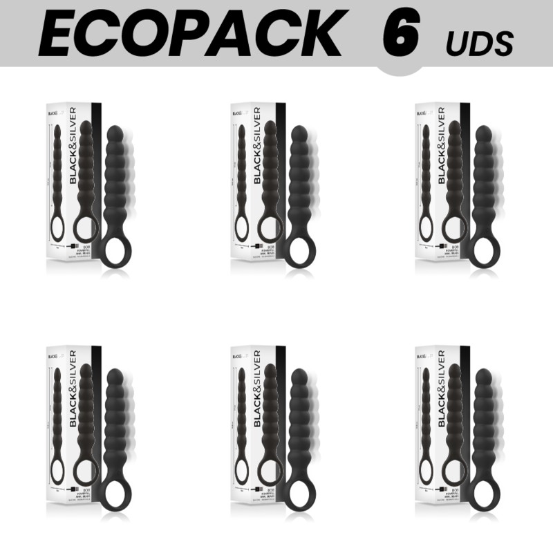 ECOPACK 6 UNITS - BLACK&SILVER BOB POWERFUL SILICONE ANAL CHAIN, D-234802
