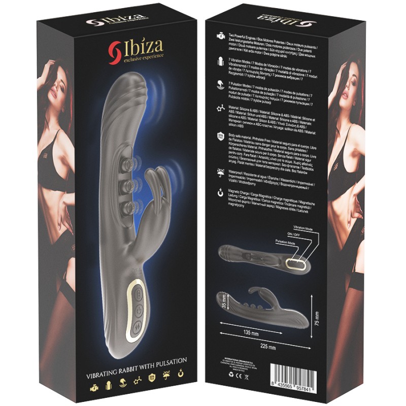 Descubre el máximo placer con el vibrador rabbit con pulsación de la prestigiosa marca IBIZA, diseñado para ofrecerte una experiencia única y satisfactoria. Este vibrador, con un elegante diseño, no solo es un accesorio para el placer, sino una herramienta pensada para intensificar cada momento íntimo.