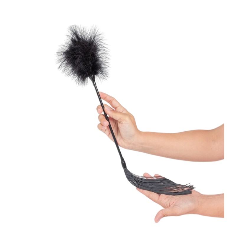 Es el momento adecuado para probar este nuevo juguete destinado al placer con látigo por un lado y plumas por el otro.