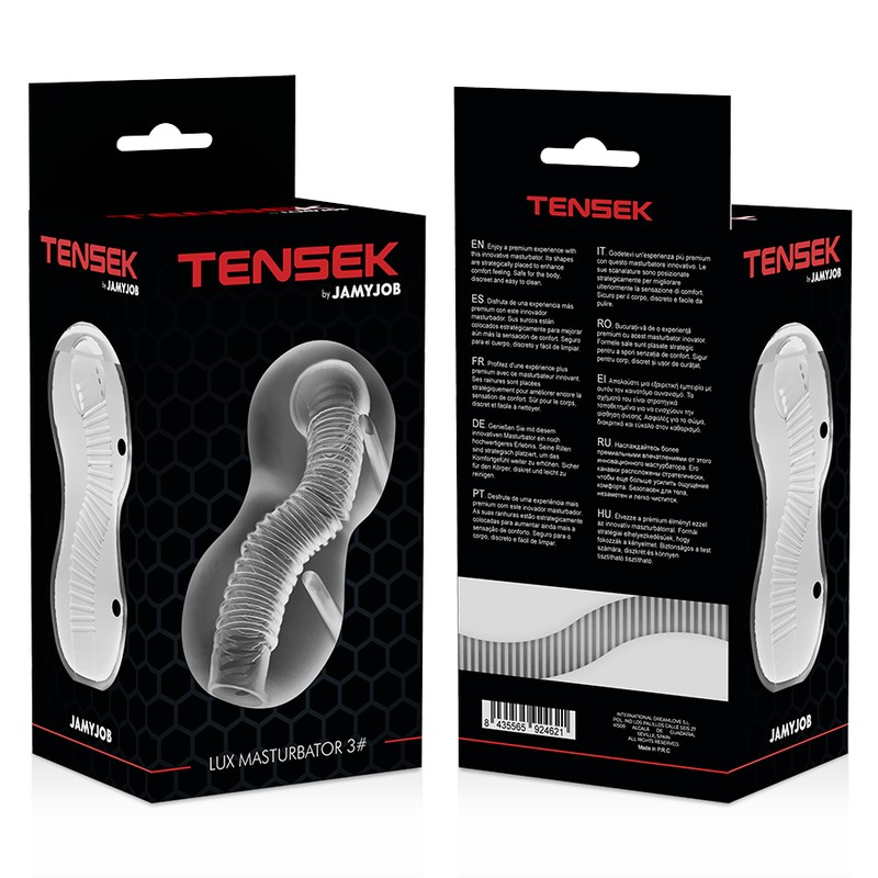 Disfruta de una experiencia completamente nueva. El innovador modelo TENSEK 3 se une a la línea JAMYJOB de masturbadores y presenta un diseño único completamente transparente que no deja nada a la imaginación.