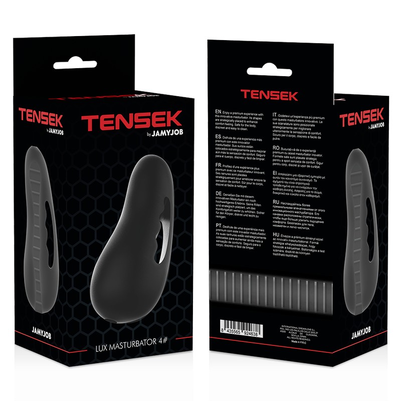 Disfruta de una experiencia completamente nueva. El innovador modelo TENSEK 4 se une a la línea JAMYJOB de masturbadores y presenta un diseño único completamente negro con agarre facil.