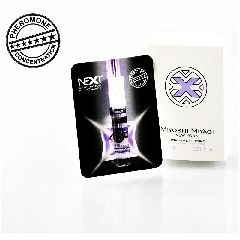 Pensando en estas mujeres excepcionales, creamos el perfume Miyoshi Miyagi NEXT con un complejo activo de feromonas de nueva generación. Esta fragancia única ha sido diseñada como símbolo del siguiente paso hacia la feminidad plena.