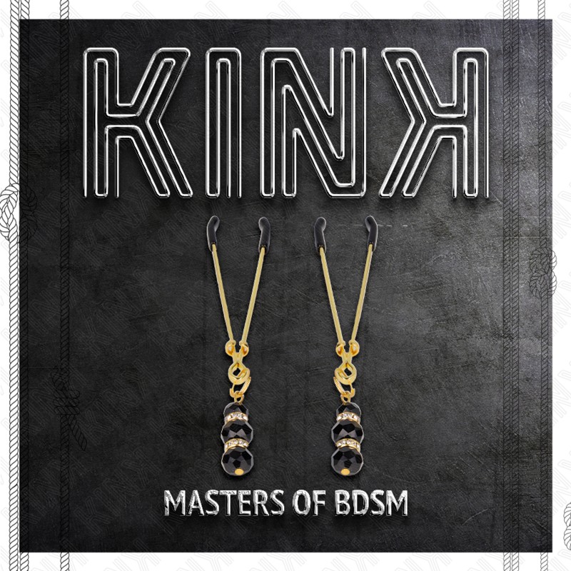 KINK - GOLD THIN NIPPLE CLAMPS WITH 3 BLACK GLASS BEADS 7 CM, D-240966
