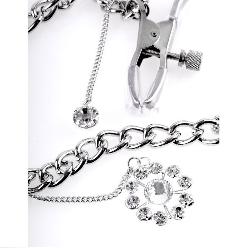 Perfectas pinzas para los pezones con cadena metálica y preciosos detalles