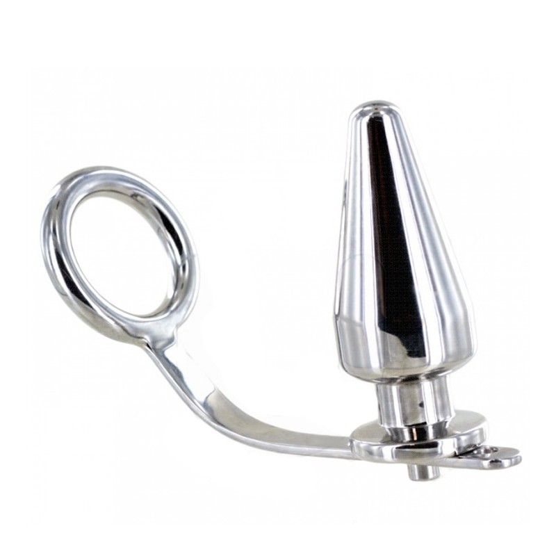 Consiste en un aro de acero quirúrgico del que sale una barra con una bola en el extremo. EL plug es para colocarlo en el ano. Utiliza un poco de lubricante para introducirlo.