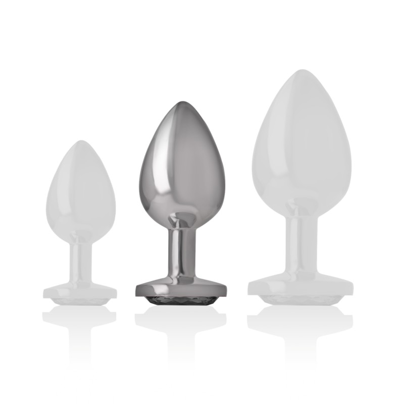 INTENSE - METAL ALUMINUM ANAL PLUG WITH BLACK GLASS SIZE M, D-234372