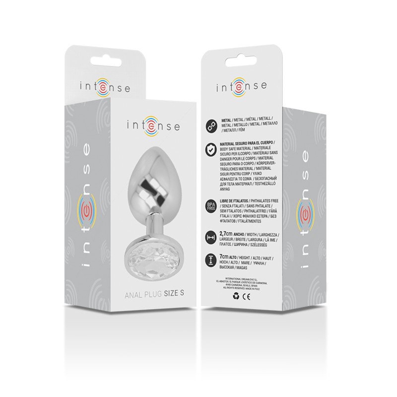 Sumérgete en un mundo de glamuroso placer con el plug anal con joya de diamante de INTENSE. Este plug anal de alta calidad está hecho de metal totalmente libre de Phalatos testado y suave y está adornado con una piedra brillante. Disfruta del lujoso diseño que convierte tus aventuras anales en una experiencia glamorosa. Con su agradable tamaño, su forma firme y manejable, este plug ofrece una estimulación anal elegante y cómoda.Ç