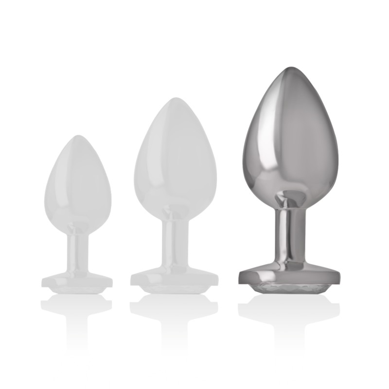 INTENSE - ALUMINUM METAL ANAL PLUG WITH SILVER CRYSTAL SIZE L, D-234376