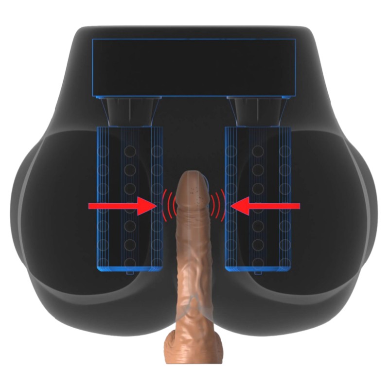 • Motores giratorios duales: ¡Cada mejilla cuenta con un motor giratorio mega potente para que su miembro sea masajeado desde ambos lados al mismo tiempo! Alimentado por un adaptador de 24V, cada motor proporciona una potencia de masaje incomparable que ordeñará su polla en seco.
