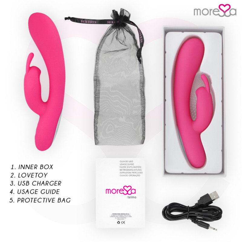 Telmo es un vibrador tecnológicamente superior, un rabbit revolucionario, un diseño curvado con un estimulador clitoral suave y flexible. Fabricado en Silicona medica de alta calidad, el conejito es ergonómico, sencillo de usar y muy potente.