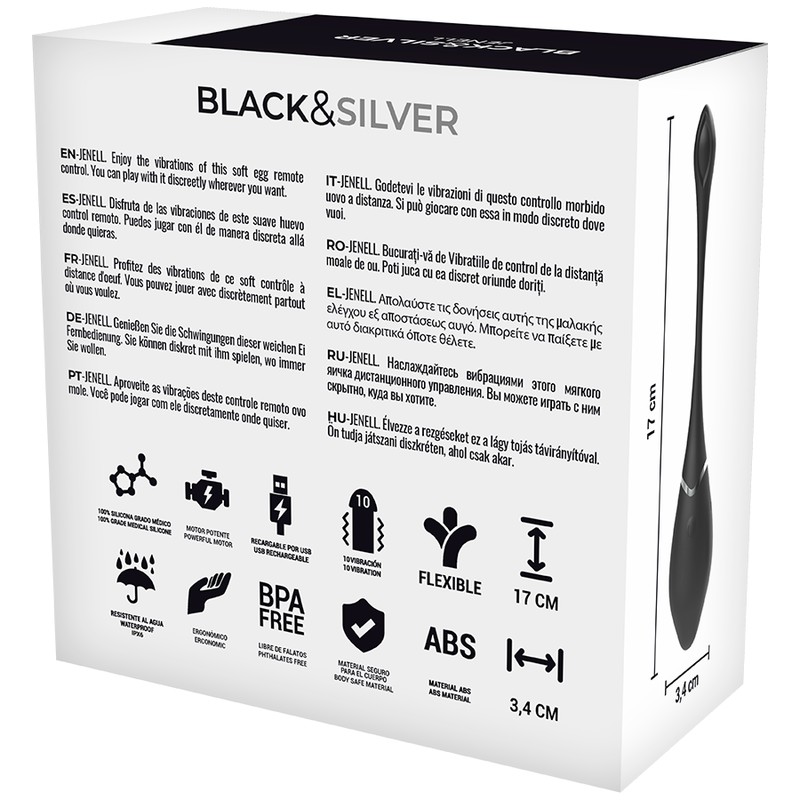BLACK&SILVER - JENELL RECHARGEABLE VIBRATING EGG, D-226992
