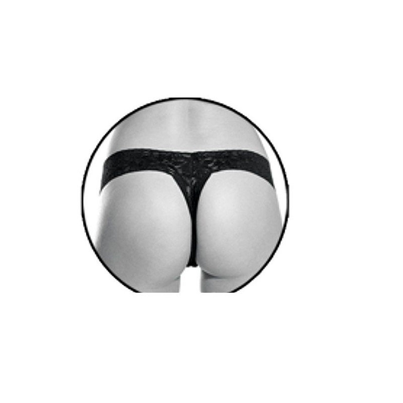 ¿Puedes guardar un secreto? Guardado discretamente dentro de este sexy tanga de encaje de cintura baja se esconde una mini bala vibradora diseñada para hacer temblar tus piernas.