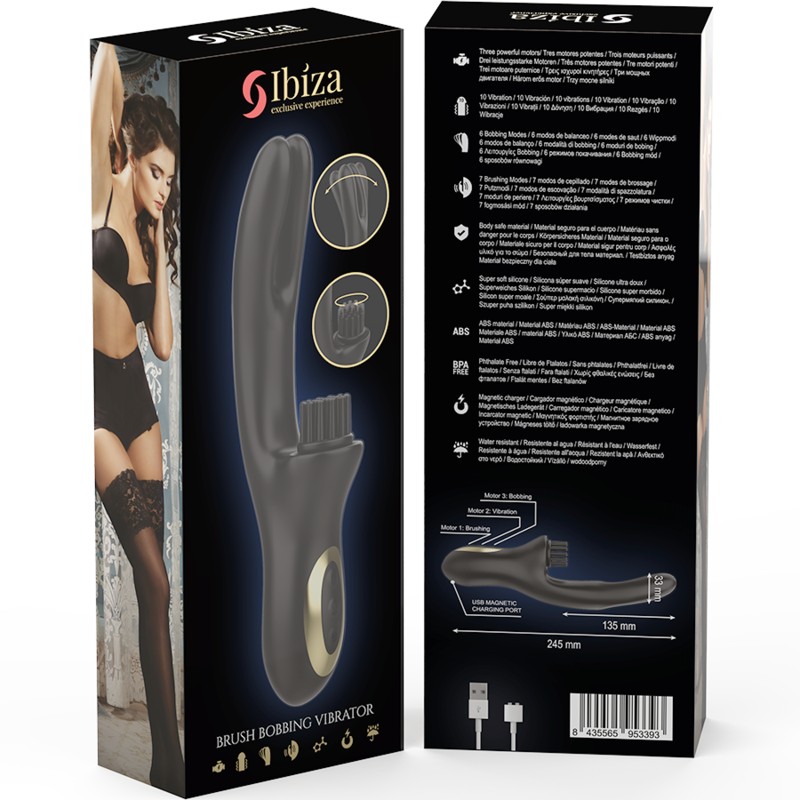 Equipado con tres poderosos motores, el IBIZA ofrece un rendimiento inigualable, diseñado para estimular múltiples zonas con precisión. Sus 10 modos de vibración, 6 modos de balanceo y 7 modos de cepillado te permiten personalizar cada momento, adaptándose a tus preferencias y llevando tu experiencia al siguiente nivel.