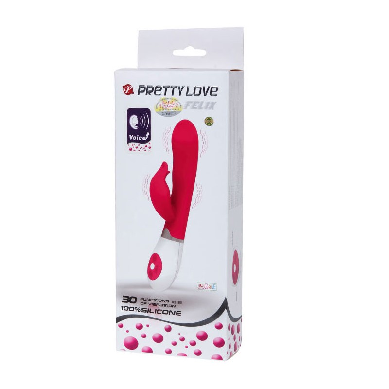Felix incorpora alta tecnologia en su interior con resultados excelentes en su exterior, dispone del sistema de voz en el que simplemente hablandole comenzará a vibrar si asà lo deseas y activas esta función, en su exterior gracias al revolucionario material silicona Pretty Love es suave y sedoso con vibraciones pulsantes.