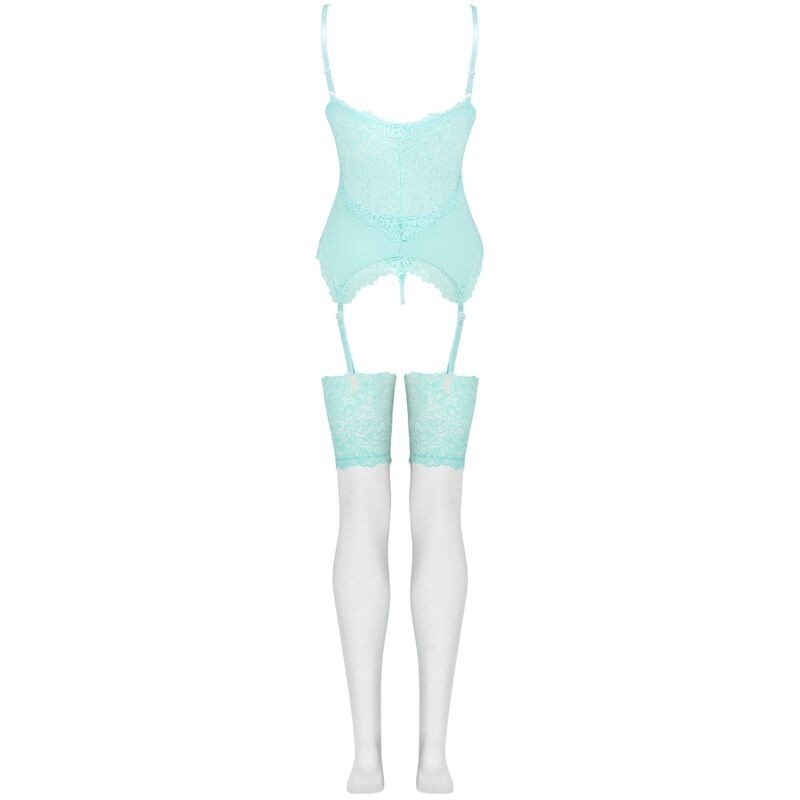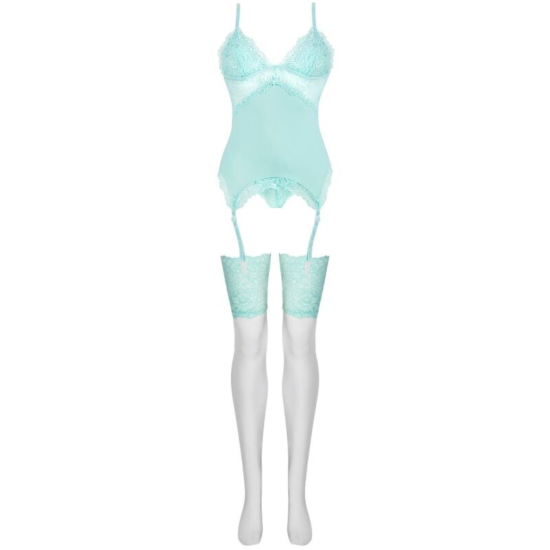 A coleção Persinne Mint Emporio é um luxuoso conjunto de pijamas de três peças contendo um espartilho. de tecido de renda, tangas de renda e meias com cinto. É a combinação perfeita pensada tanto para ocasiões especiais como para o dia a dia, que sem dúvida não deve faltar no guarda-roupa de toda mulher.