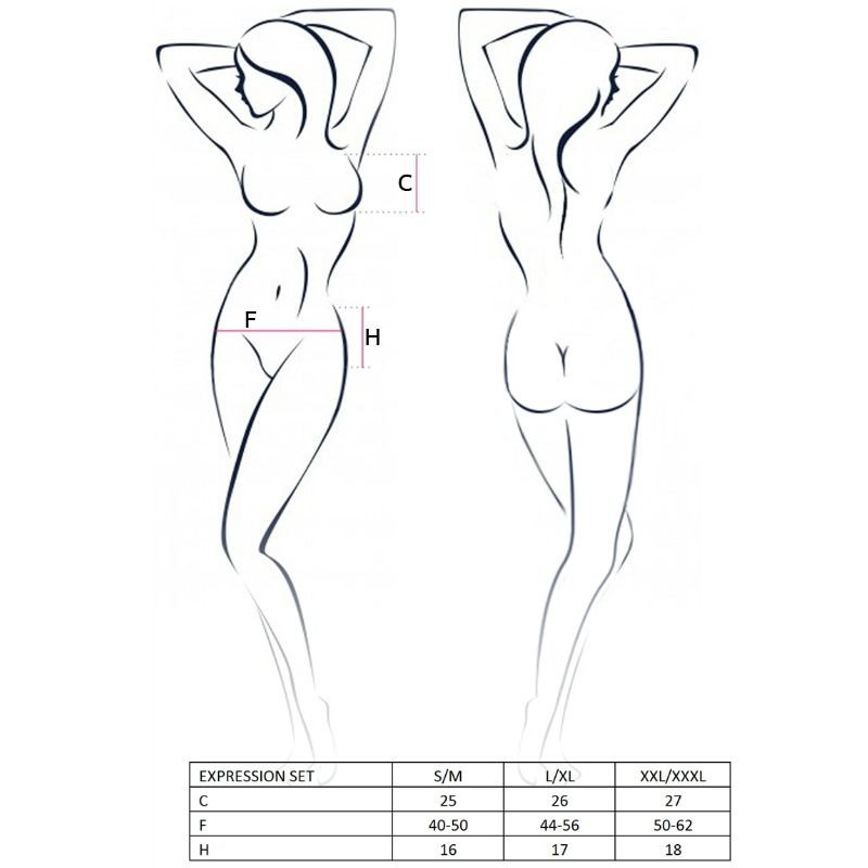 O conjunto da coleção Expression é um fabuloso conjunto de lingerie com um design espetacularmente sexy com o qual você se tornará uma bomba de sedução, fabricado pela prestigiada marca de lingerie Passion