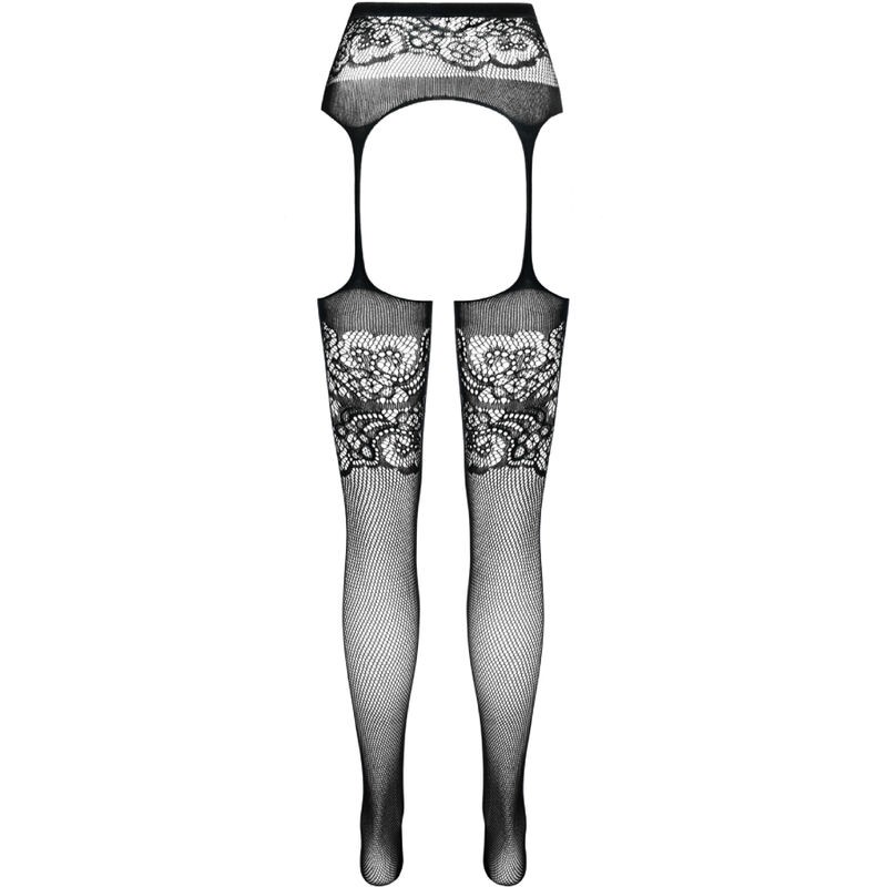 PASSION - S029 BLACK TIGHTS WITH GARTER ONE SIZE, D-236385